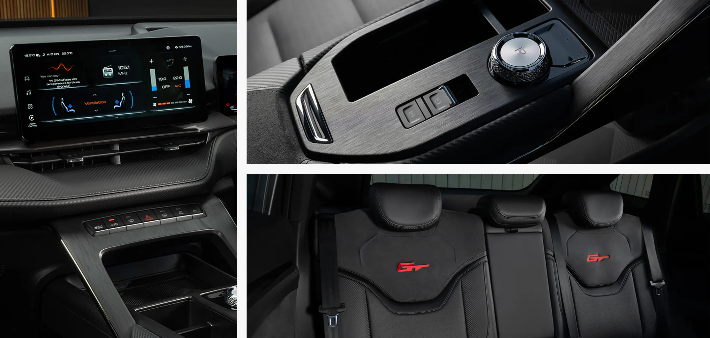 The interior of the H6GT is a testament to ergonomic design, tailored for an intuitive driving experience. At the heart of the dashboard sits a high-resolution 12.3" multimedia touchscreen, providing easy access to navigation, entertainment, and vehicle settings. ThThe interior of the H6GT is a testament to ergonomic design, tailored for an intuitive driving experience. With the H6GT PHEV, you can enjoy the same premium cabin with the added benefit of hybrid efficiency, giving you the best of performance and sustainability.